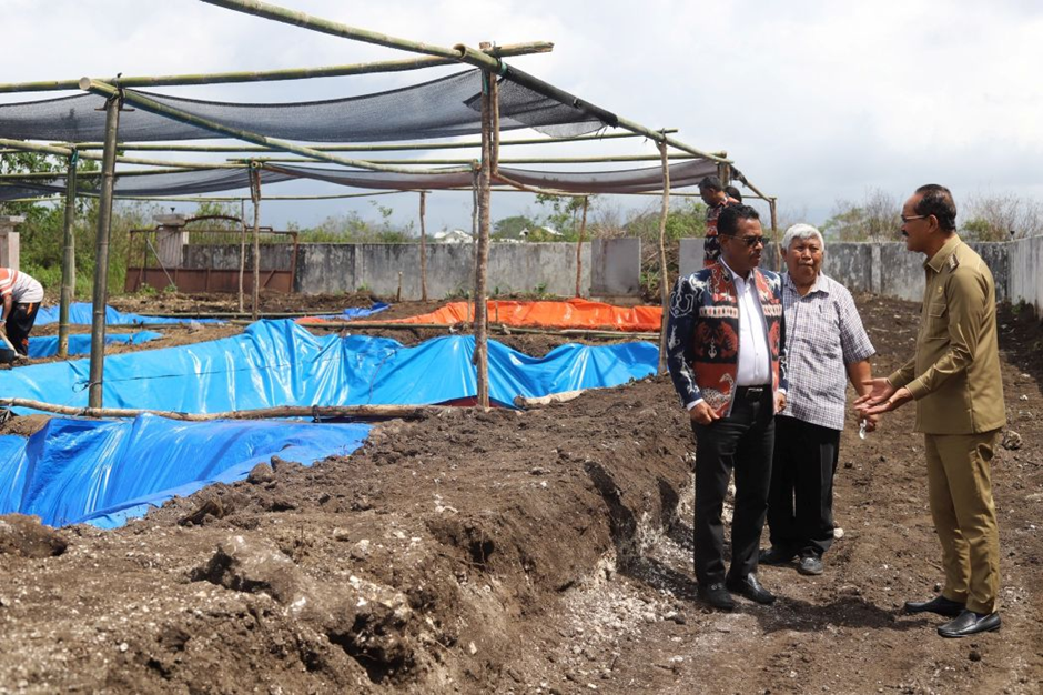 Bupati Sumba Tengah, Paulus S. K. Limu ketika memberi penjelasana kepada Rektor Undana Kupang, Prof. Dr. drh. Maxs U. E. Sanam, M.Sc, tentang Program Pekarangan Pro Oli Mila Model di Sumba Tengah, Jumat (10/10/2025). Foto: ProkopimSTeng