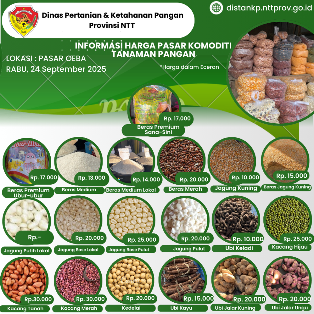 24 September 2025 Informasi Harga Komoditi Tanaman Pangan di Pasar Oeba