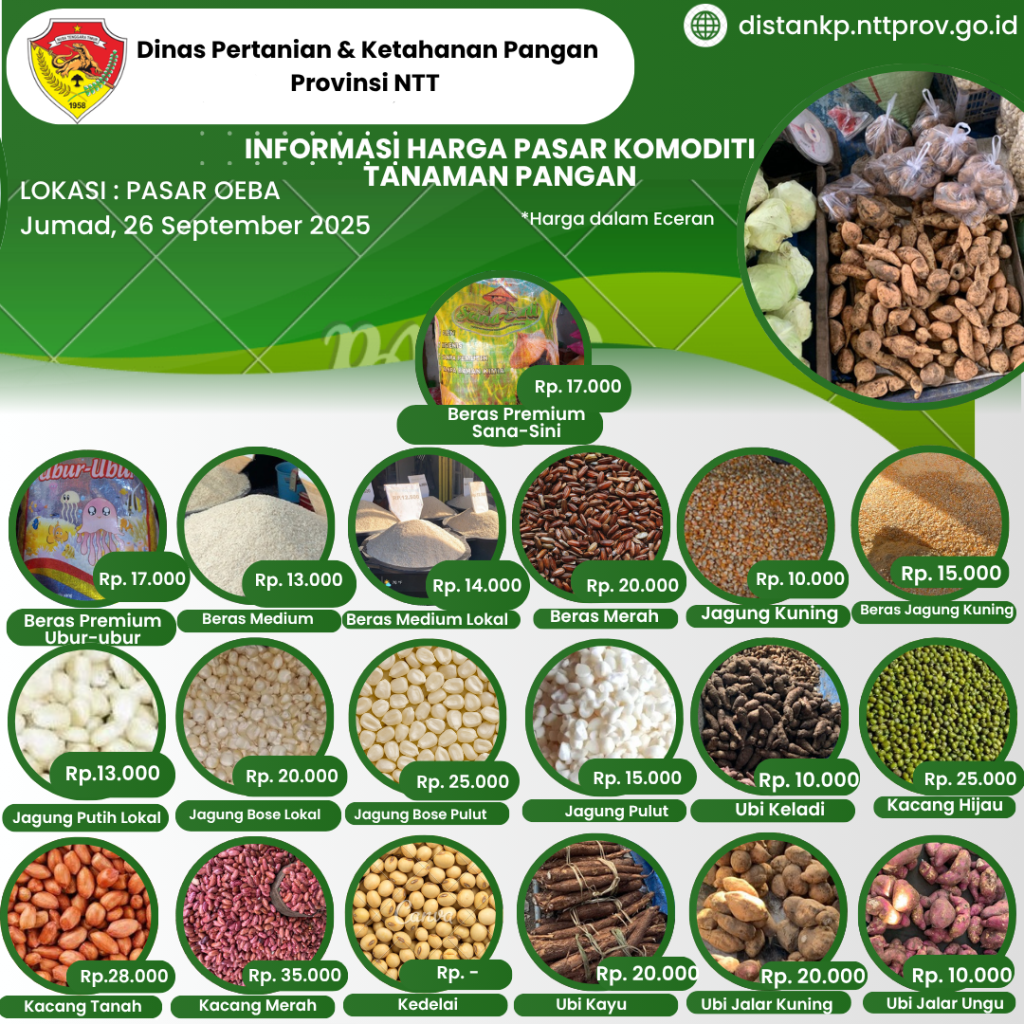26 September 2025 Informasi Harga Komoditi Tanaman Pangan di Pasar Oeba
