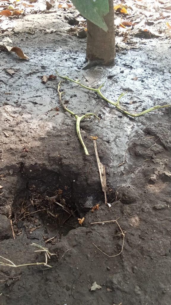 - Larutan dikocorkan pada area perakaran tanaman jambu air