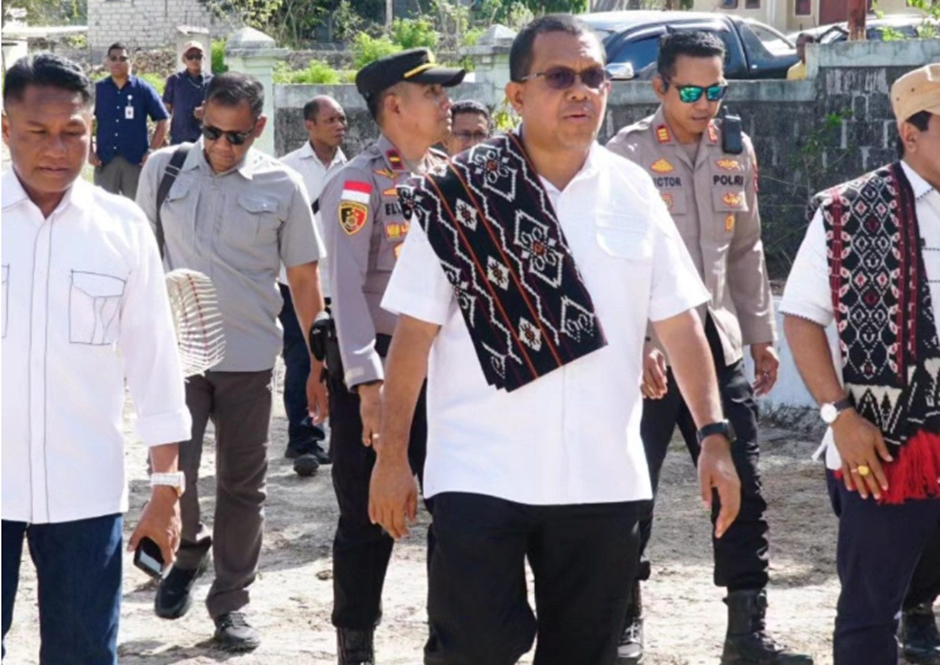 Gubernur NTT, Emanuel Melkiades Laka Lena didampingi Bupati Rote Ndao Paulus Henuk dan Kaban Aset dan Pendapatan Daerah Provinsi NTT, Alexon Lumba, ketika mengunjungi Unit Pelaksana Teknis Daerah (UPTD) Pendapatan Daerah Provinsi NTT Wilayah Rote Ndao di Baa, Sabtu (20/9/2025). Foto: Iqbal