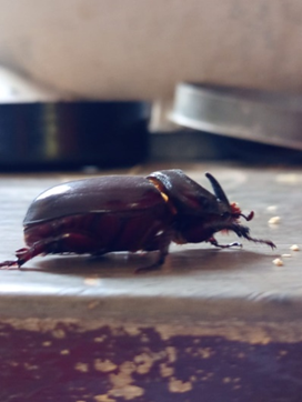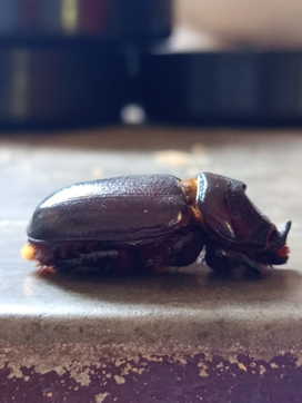 Hama yang menjadi masalah utama pada budidaya tanaman kelapa di Indonesia adalah kumbang Oryctes rhinoceros. O. rhinoceros merupakan hama yang dapat memberikan dampak negatif pada budidaya tanaman kelapa karena memiliki kemampuan merusak yang tinggi. Hama ini tersebar luas di seluruh provinsi Indonesia (Sambiran & Hosang, 2007). O. rhinoceros aktif pada malam hari untuk melakukan reproduksi maupun memakan tanaman kelapa, kumbang memakan pucuk daun yang masih muda, sehingga bila daun terbuka terlihat kerusakannya, daun mempunyai sayatan berbentuk V (Siswanto & Trisawa, 2018). Serangan O. rhinoceros pada tanaman kelapa terjadi pada saat hama memasuki stadium imago, serangan dilakukan oleh hama jantan ataupun betina.