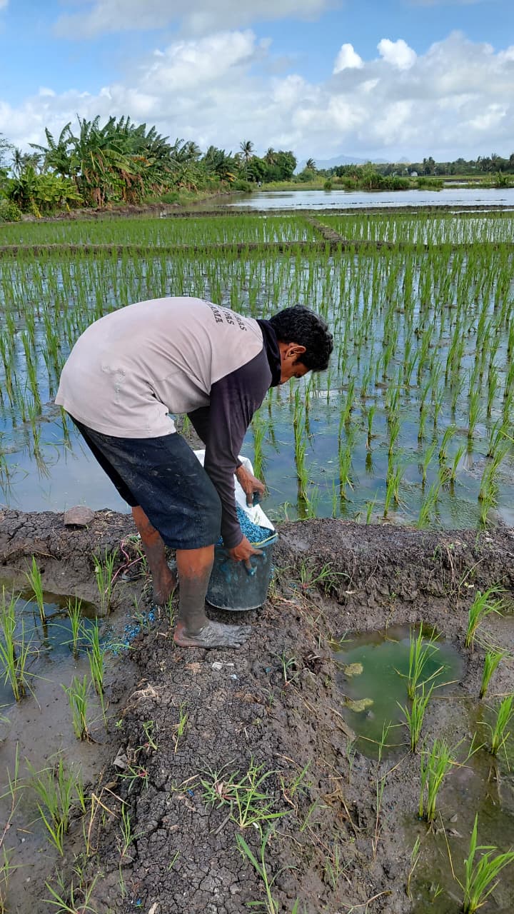 Pemupukan Pertama Calon Benih Padi Varietas Ciherang Kelas BD di BBI Noelbaki