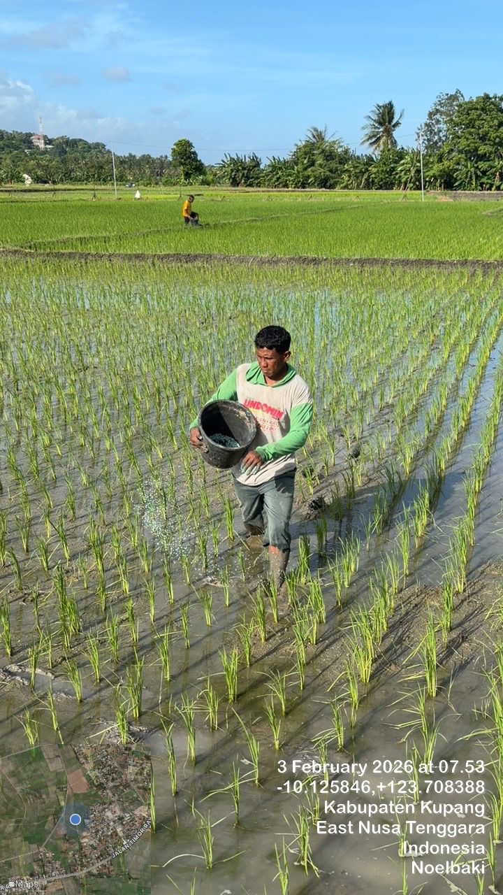 Noelbaki, Selasa, 3 Februari 2026 – Dalam rangka mendukung keberhasilan produksi benih padi bermutu, telah dilaksanakan kegiatan pemupukan pertama pada calon benih padi Varietas Ciherang Kelas BD di Balai Benih Induk (BBI) Noelbaki. Pemupukan ini menggunakan pupuk Urea dan NPK sebagai sumber utama unsur hara bagi tanaman pada fase awal pertumbuhan.