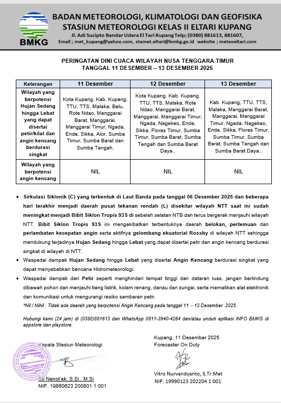Sumber: BMKG Stasiun Meteorologi Kelas II El Tari Kupang, 11 Desember 2025